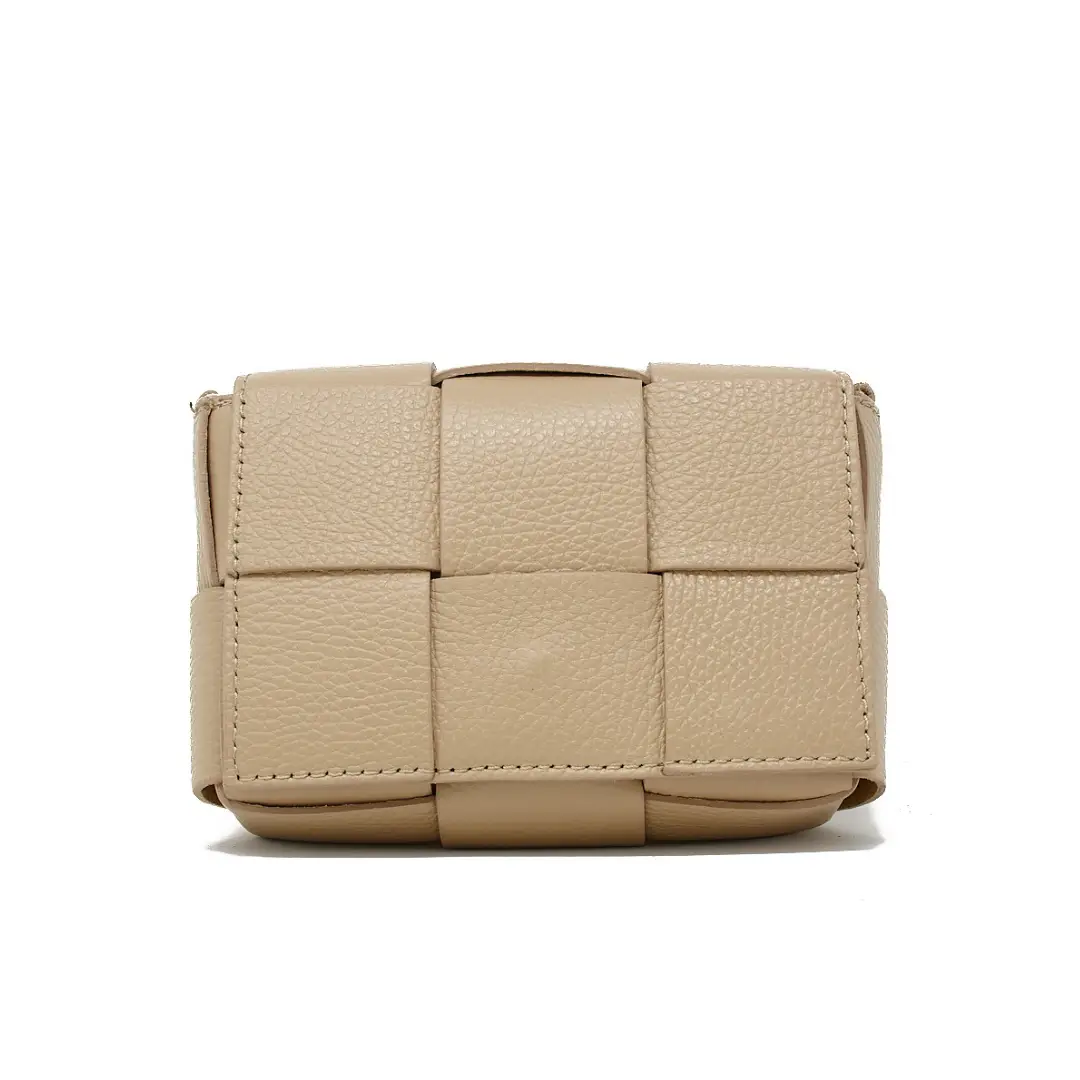 Taupe Woven Genuine Italian Leather Crossbody Bag