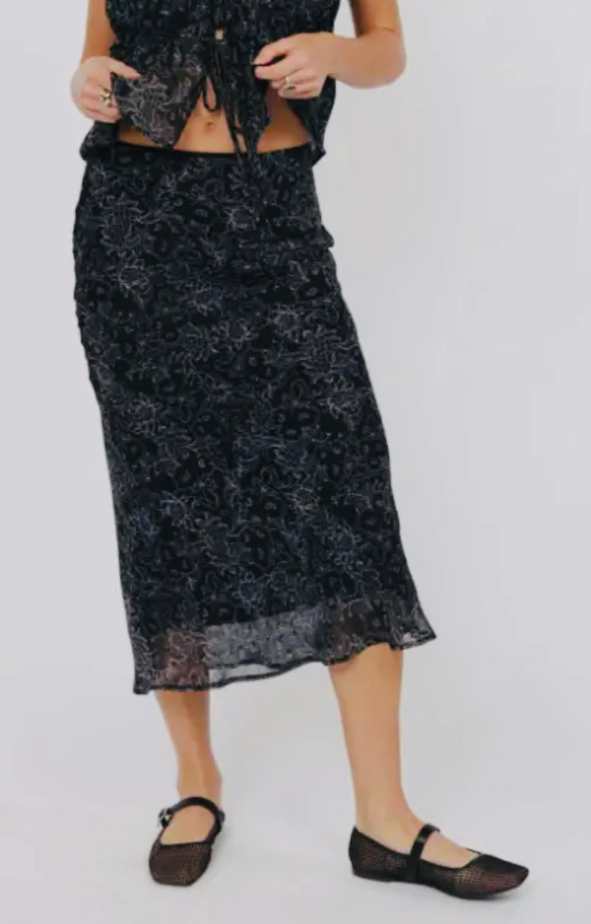 Passionate Print Chiffon Lined Bias Midi Skirt