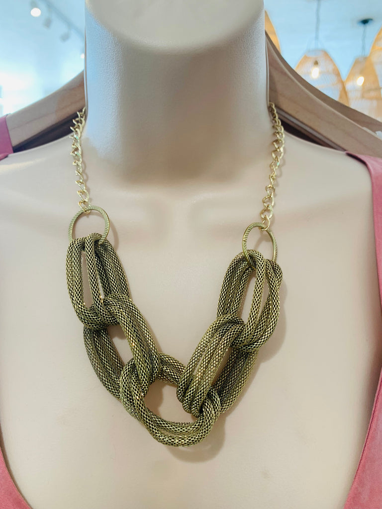 Vintage Chunky Gold Mesh Link Statement Necklace
