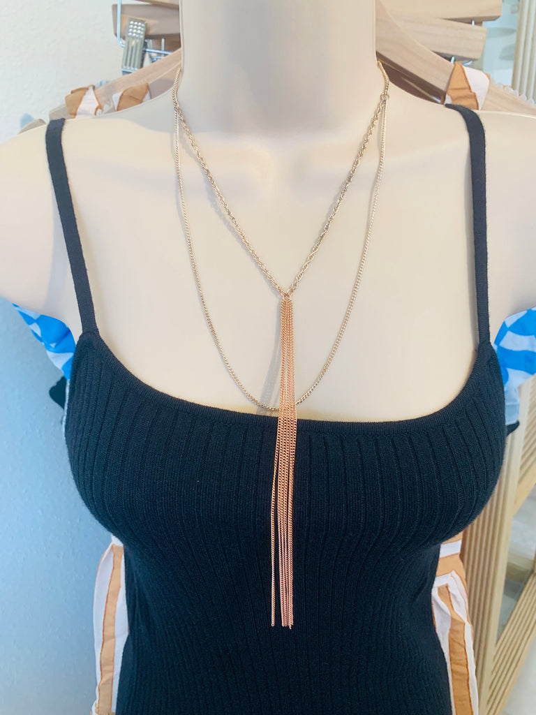 Vintage Layered Rose Gold Tassel Pendant Necklace