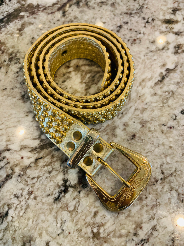Vintage Light Orange Studded Blue Rhinestone Belt