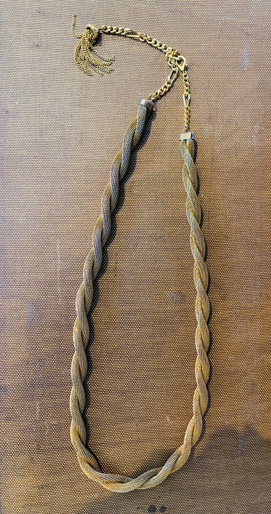 Vintage Twisted Gold Mesh Braided Chain Belt With Tassle