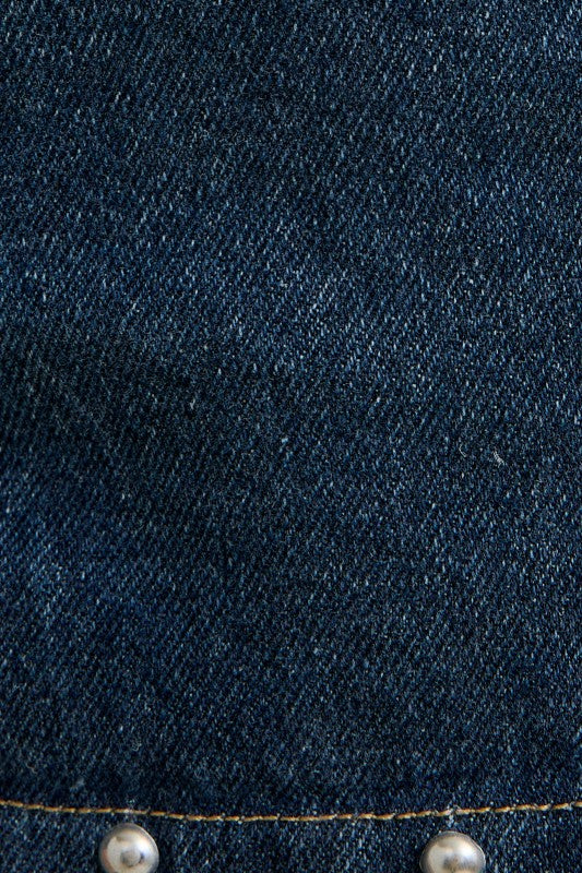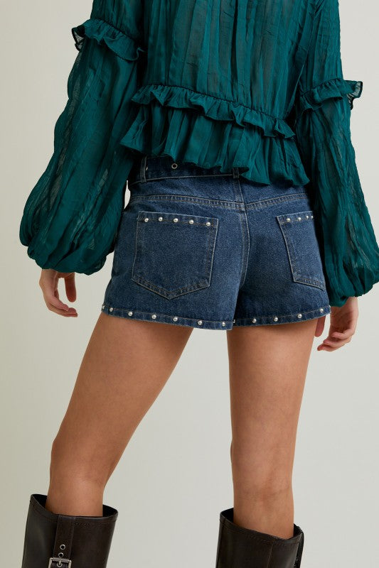 Indigo Stud Low Waist Shorts - L is backordered and will ship as soon as it is back in stock.