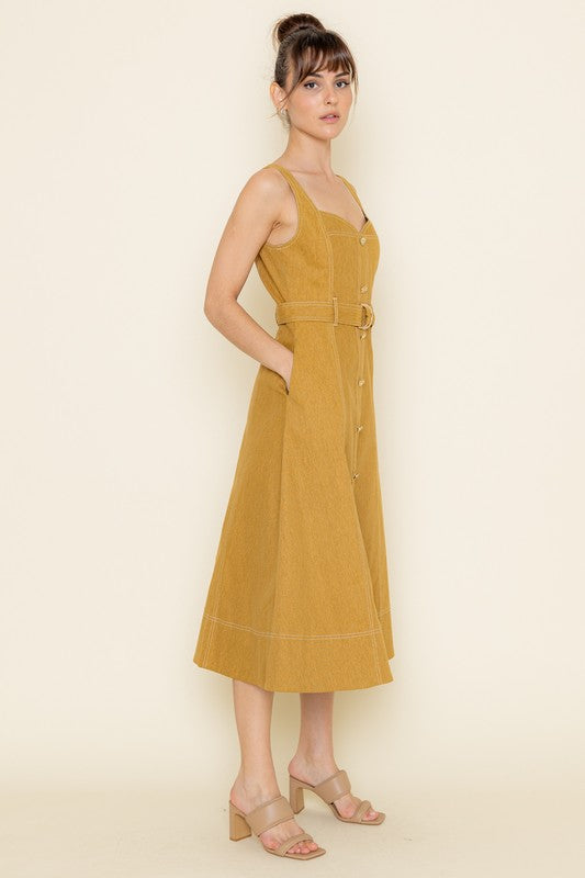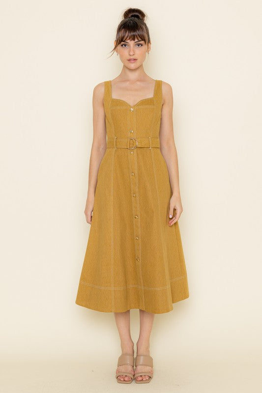 Copper Denim Button Up Midi Dress - S is backordered and will ship as soon as it is back in stock.
