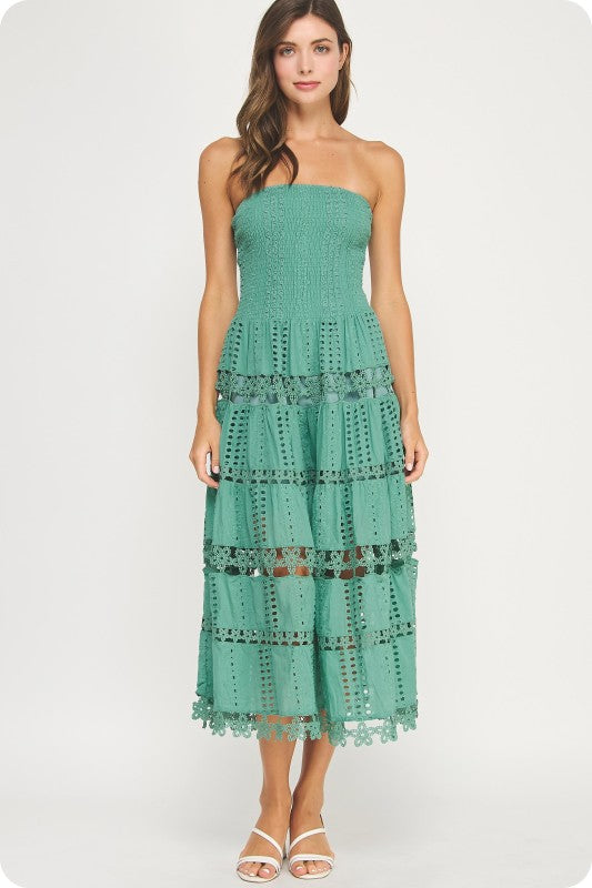 Green Eyelet Lace Tube Dress - M is backordered and will ship as soon as it is back in stock.