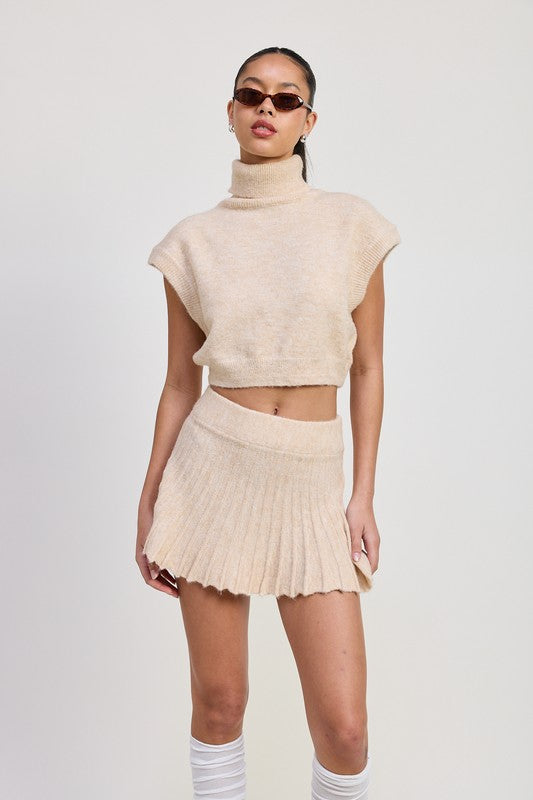 Sand Pleated Knit Mini Skirt - S is backordered and will ship as soon as it is back in stock.
