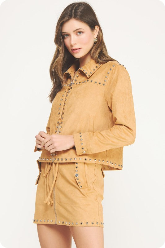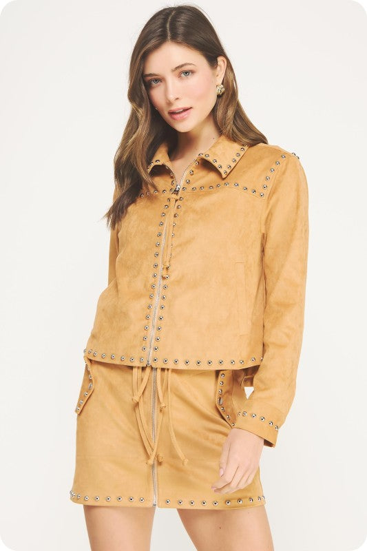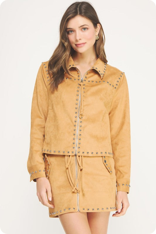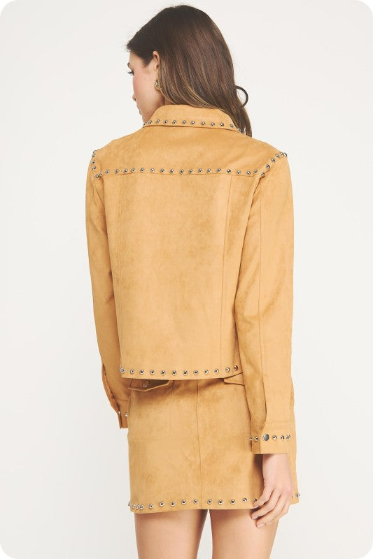 Hazel Suede Studded Detail Jacket - S is backordered and will ship as soon as it is back in stock.