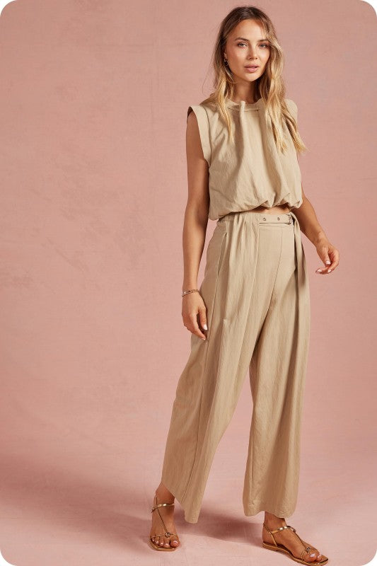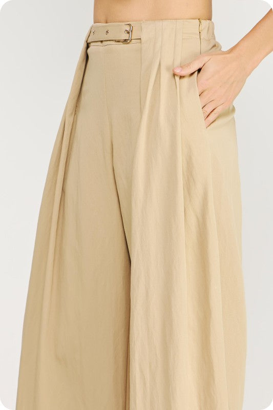 Tan Wide Led Pleated Pants - S is backordered and will ship as soon as it is back in stock.