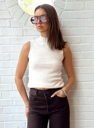Brianna Cream Sleeveless Turtle Neck Sweater