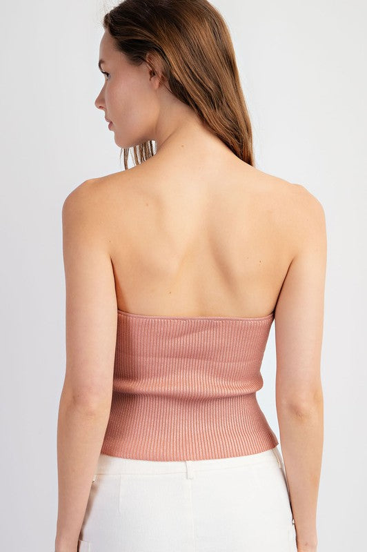 Pink Foiled Ribbed Sweater Tube Top