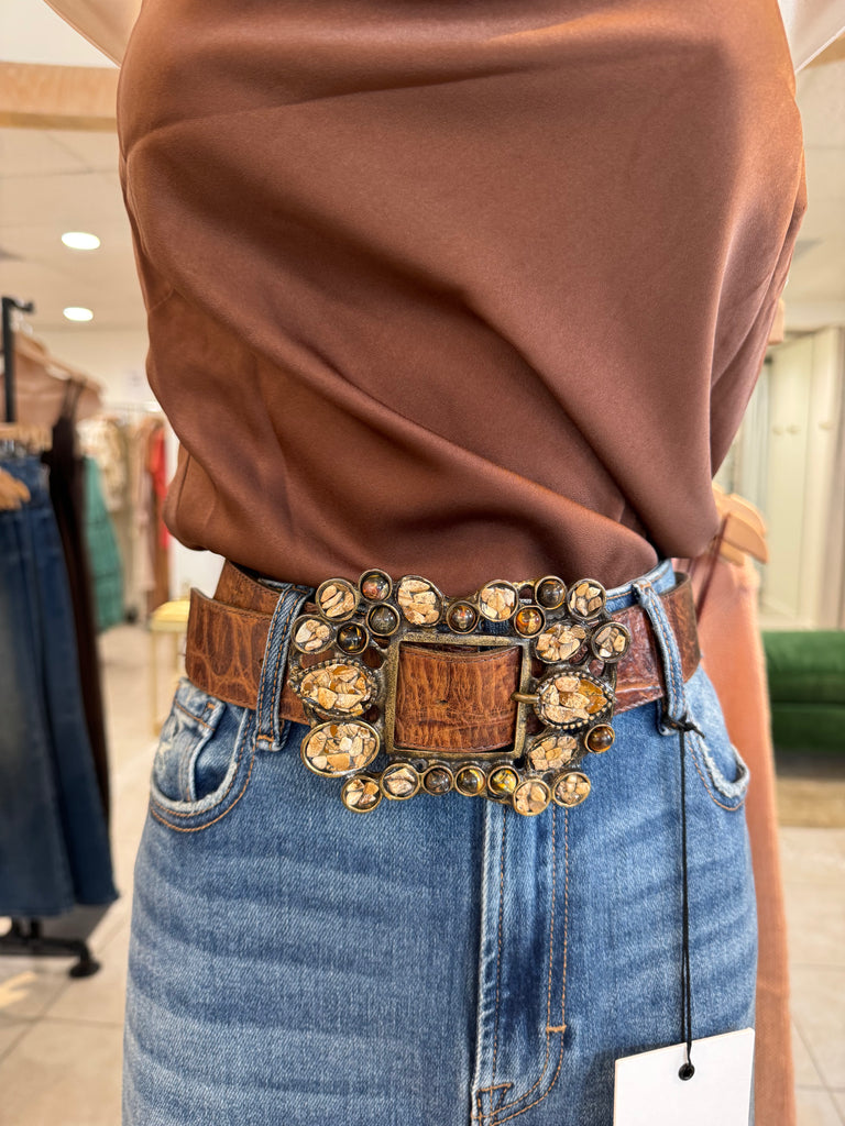 Vintage Brown Stone Leather Rock Belt