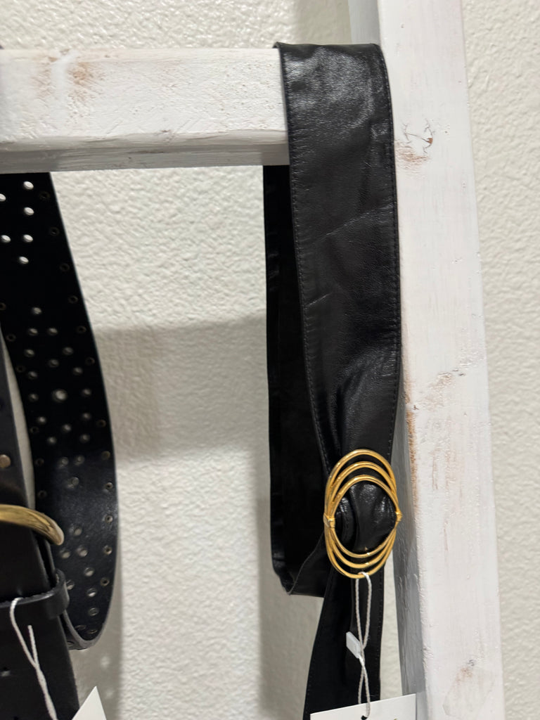 Vintage Black Soft Leather Waist Belt