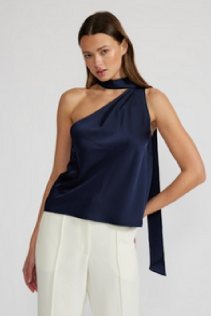 Susan Tie Neck Navy Top