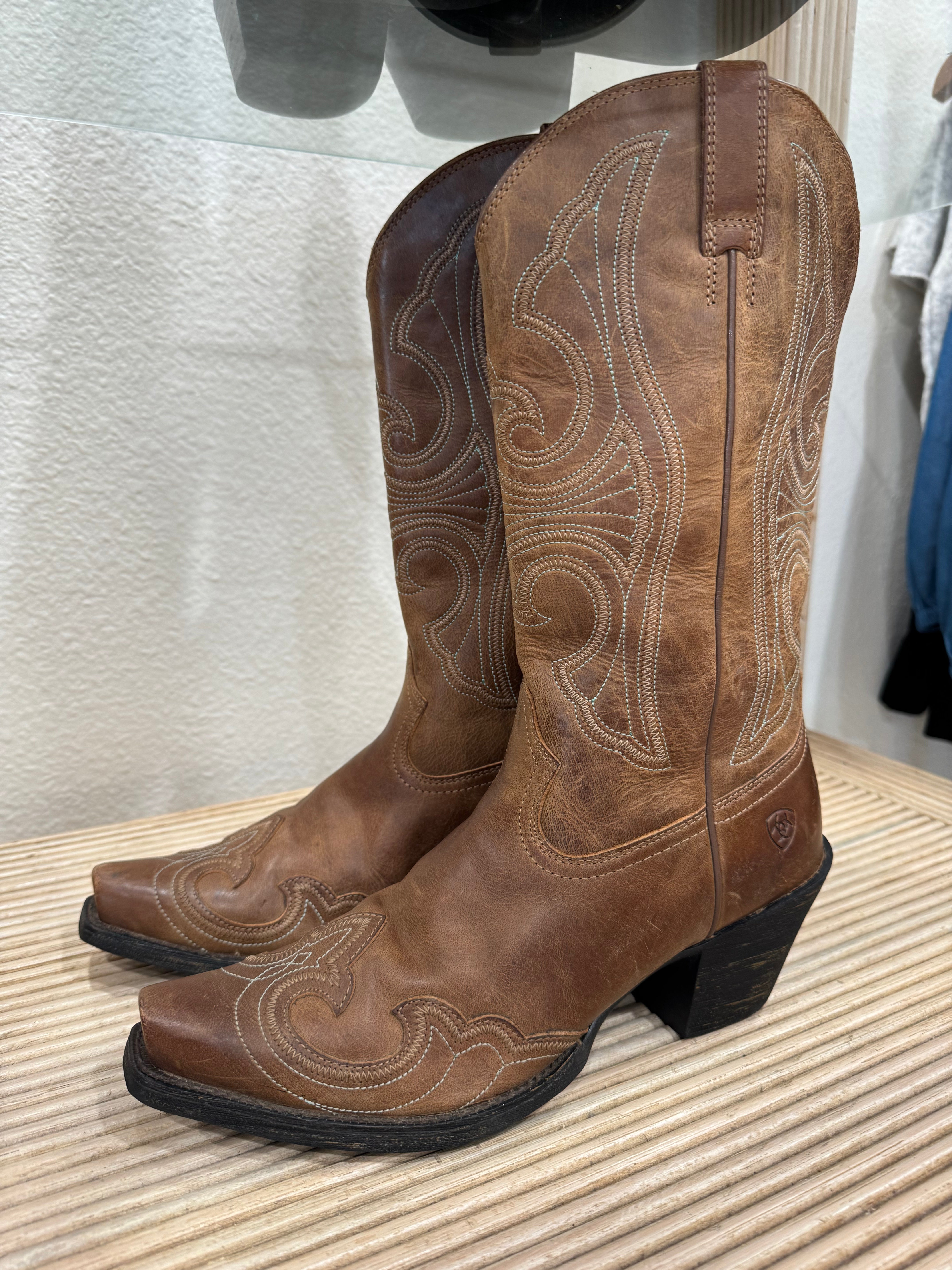 Vintage Brown and Teal Ariat Cowgirl Boots